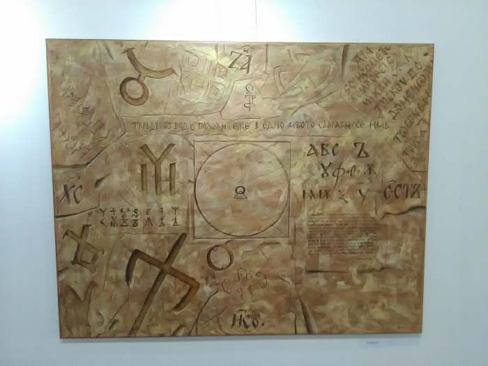 Върху платната на един от най-обичаните от ценителите на изобразителното изкуство творци са изобразени Розетата от Плиска, Аз-ът на българите, древнобългарският календар, богомилски, езически символи и други знаци от древната история на България. Портрети на Кольо Фичето, Орфей и Евридика и Спартак също са сред творбите, които могат да видят дупничани и гостите на града в зала „Околийската къща“.
